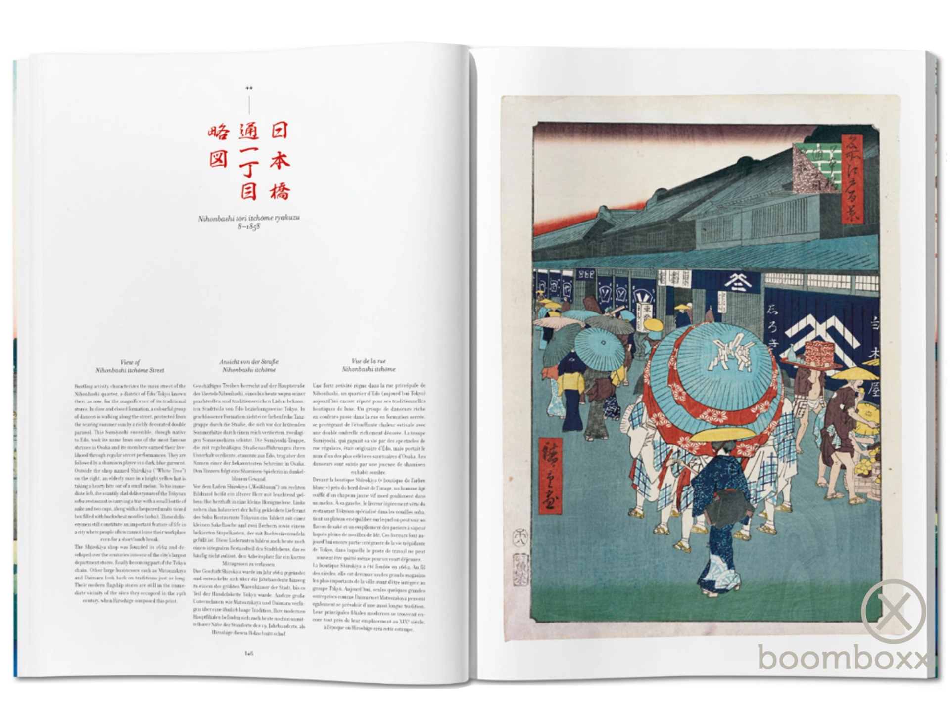 Hiroshige, One Hundred Famous Views of Edo. Een schitterende herdruk van Hiroshige's uitzicht op Edo (het huidige Tokio), een van de meesterwerken van de ukiyo-e houtsnedetraditie en een voorbeeld van het Japonisme dat impressionistische, postimpressionistische en art nouveau-kunstenaars, van Vincent van Gogh tot James McNeill Whistler, inspireerde. Boomboxx verkoopt naast kleding en sneakers ook een groot deel lifestyle, dat kan zijn accessoires voor in je intereur maar ook de mooie koffietafelboeken mogen niet ontbreken van de uitgever TASCHEN. De collectie die wij van Taschen selecteren moet onze persoonlijke interesse hebben of verwant zijn aan de Boomboxx lifestyle visie.