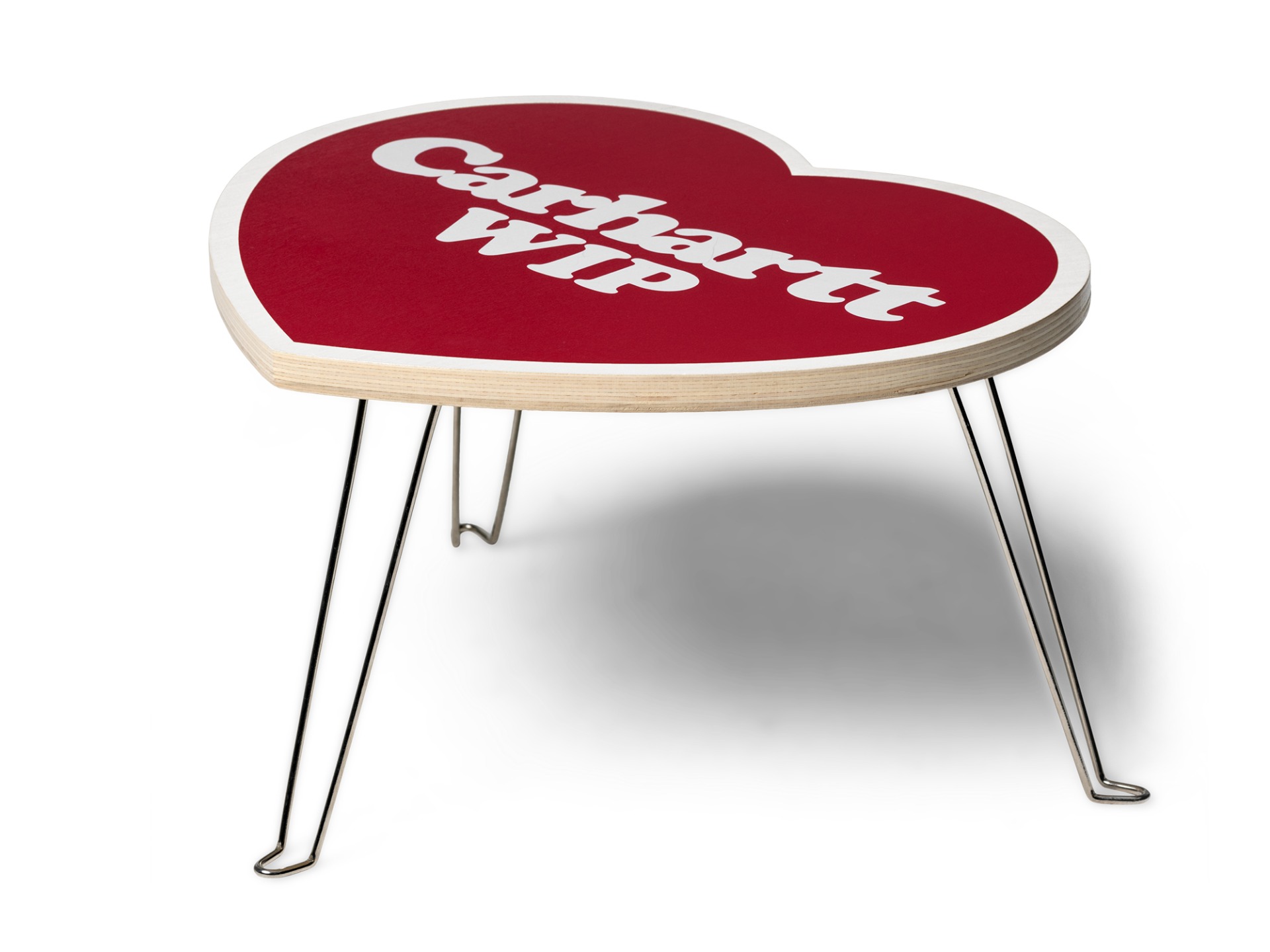 CARHARTT WIP Heart Folding Table Scarlet White. De Heart Folding Table is gemaakt van berkenmultiplex in de vorm van ons klassieke Heart-motief en het tafelblad is voorzien van een grafische print. Het tafelblad rust op inklapbare ijzeren poten.