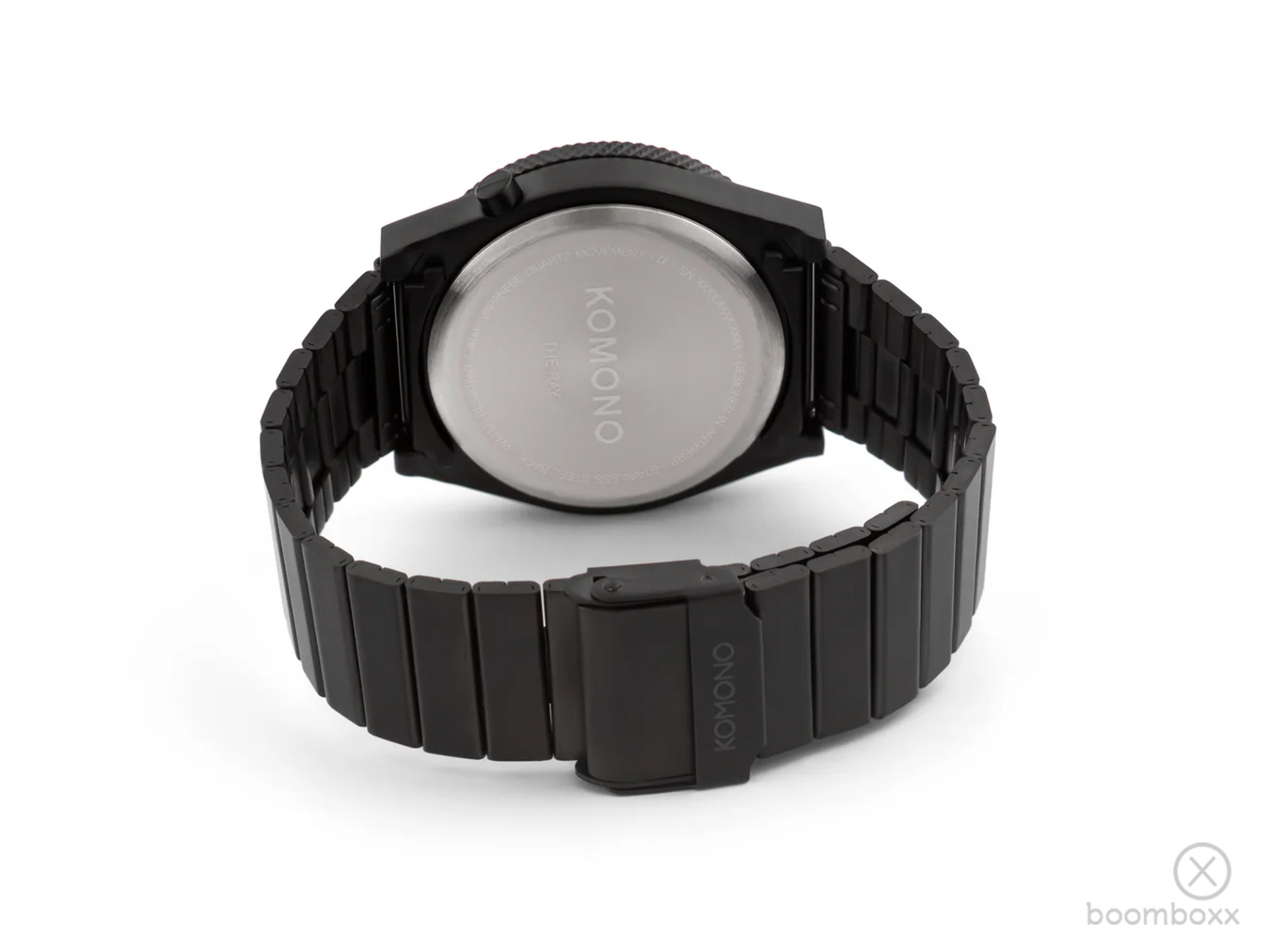 KOMONO Ray Solid Black. Ervaar de strakke designs van de Solid-collectie, waar tone op tone de hoofdrol spelen. Omarm de strakke en betoverende energie van deze eigentijdse horloges.