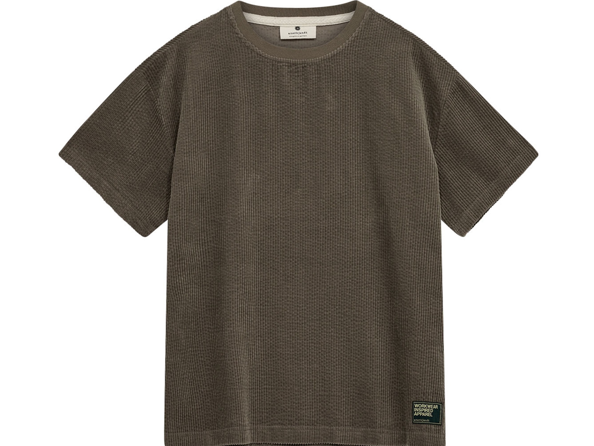 Anerkjendt Akvillads Cord T-Shirt Deep Lichen Green. De Anerkjendt heren kleding past bij iedere moderne man die gevoel heeft voor stijl en klasse en is verkrijgbaar in Gouda bij Boomboxx. Wil je alles zien van de Anerkjendt kleding collectie klik dan: HIER!!
