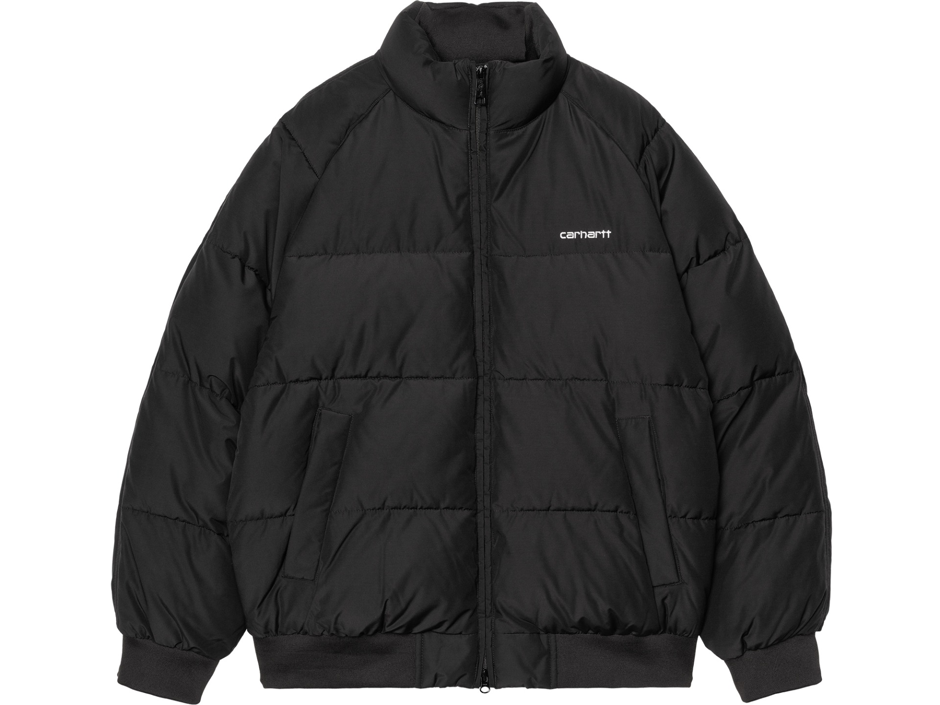 CARHARTT WIP Nebraska Jacket Black White. Het Nebraska Jacket is gemaakt van lichte polykatoen dat gewatteerd is met imitatiedons voor extra warmte. Het jack heeft ook waterafstotende eigenschappen voor guur weer. Een ribgebreide kraag, onderzoom en manchetten zorgen voor een taillerende, isolerende pasvorm. Op de voorkant bevindt zich ook een geborduurd Script Logo.