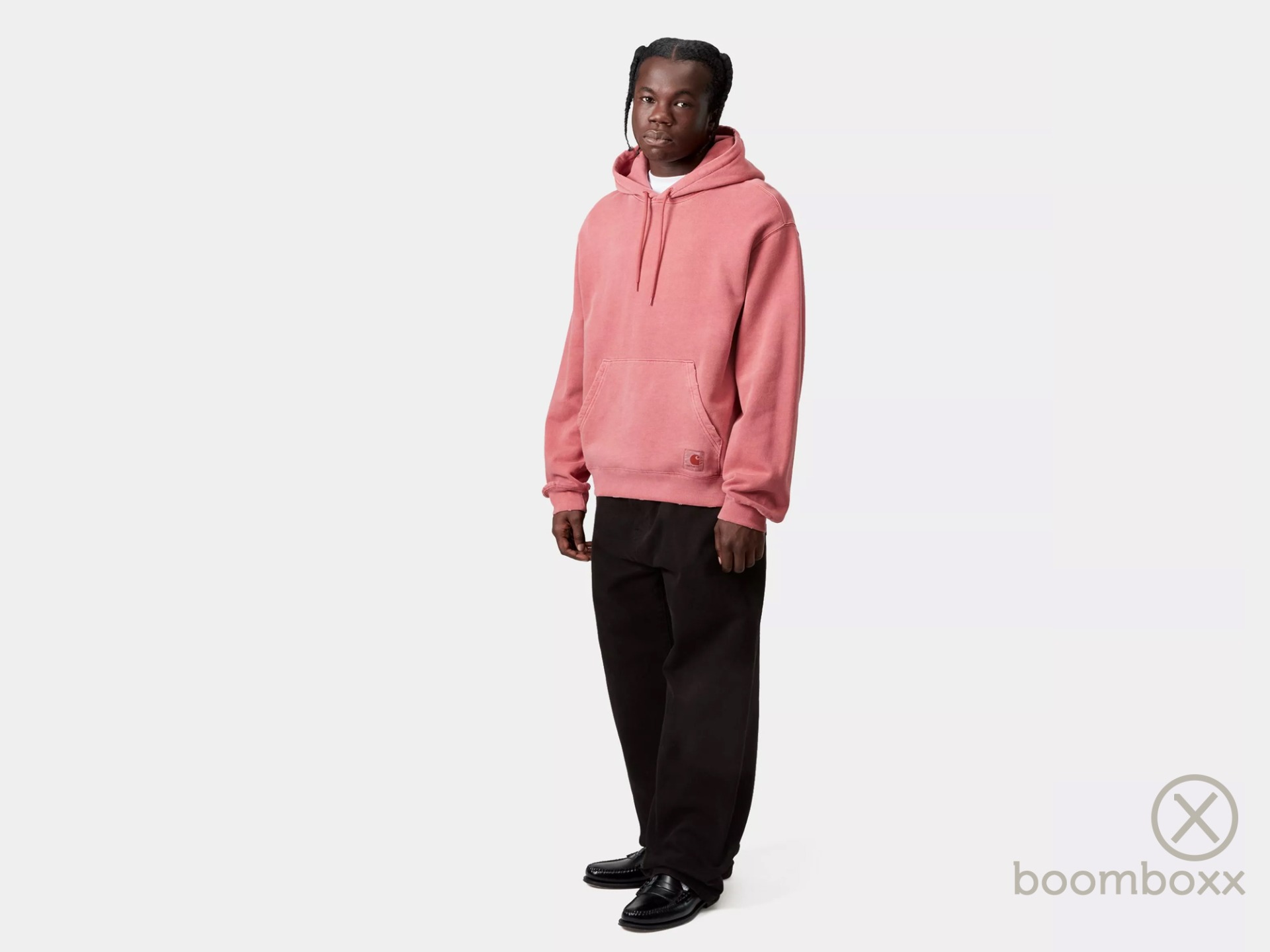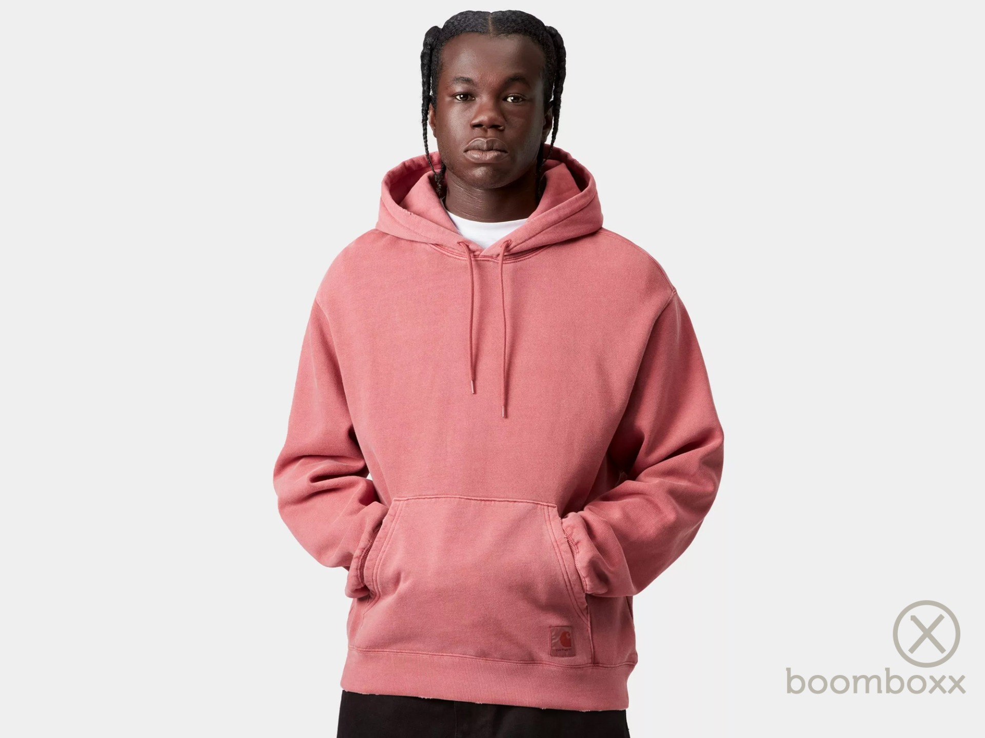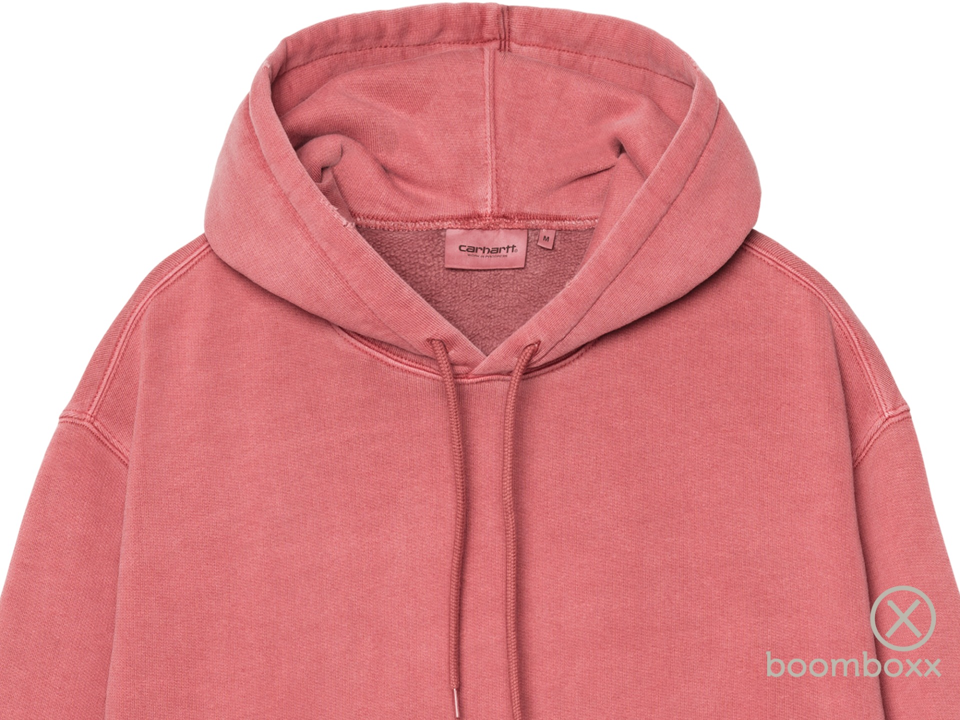 CARHARTT WIP Hooded Torion Sweat. De Hooded Torion Sweater is gemaakt van een zware, ongeborstelde katoenen stof met een tactiele loopback-constructie. Het model heeft een balloon fit, die iets losser en breder valt, maar wordt ook gekenmerkt door verlaagde schouders en geribde randen. De sweater heeft een grind-wash behandeling gehad, waardoor hij een licht verweerde en versleten finish heeft. Op de buidelzak bevindt zich een overdyed geweven Square Label. De Hooded Torion sweater in de kleur Marsala koop je bij de Boomboxx kleding en sneakerstore te Gouda.