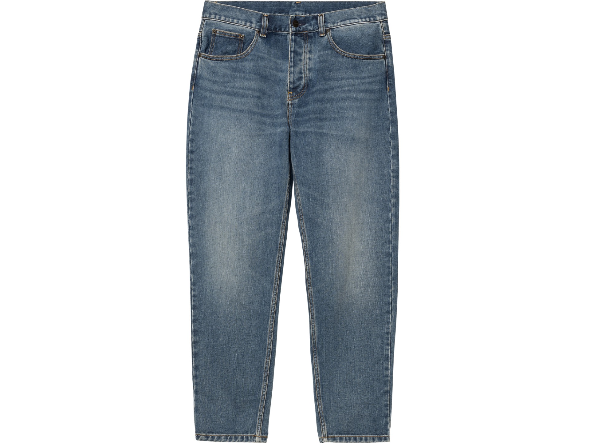 Carhartt Wip Newel Pant Dark Used Wash. De Newel Pant van Carhartt is een five-pocket model, gemaakt van Maitland denim van 382,7 gram, met een relaxed tapered fit en een normale taille. Dit model is verkrijgbaar in verschillende uitvoeringen, variërend van een gewassen versie, met een verzadigde maar toch licht versleten afwerking, tot een stone-bleached versie die er lichter uitziet. Een achterpas en een geweven Square Label op de achterzak maken het ontwerp helemaal af.