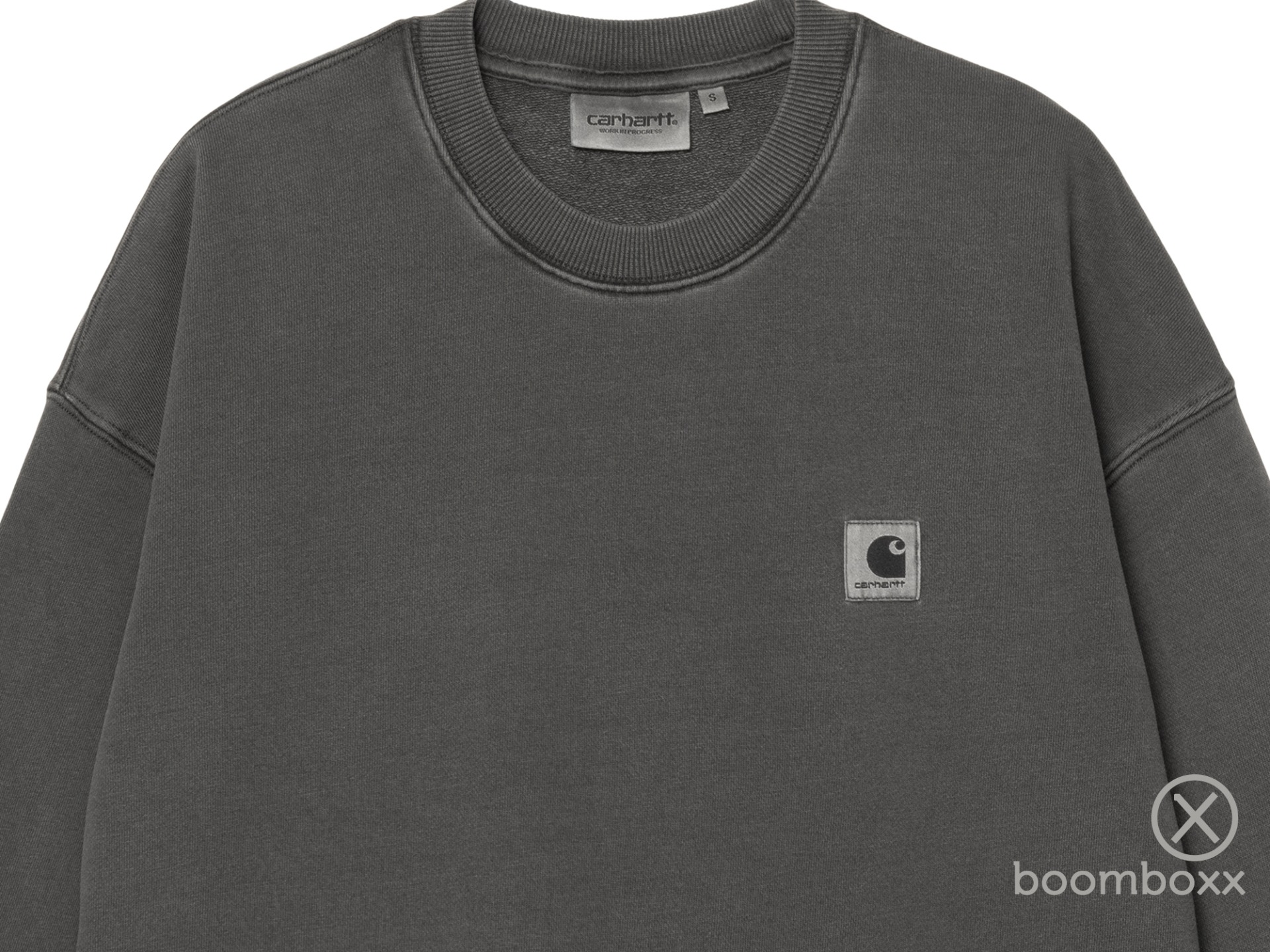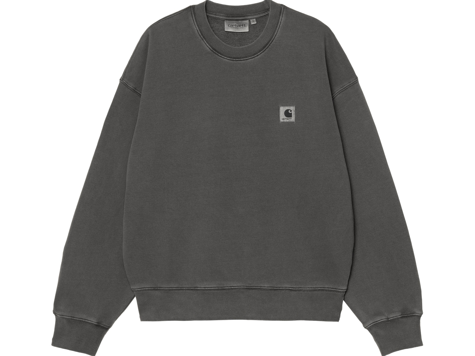 Carhartt Wip W Nelson Sweatshirt Black. Het Women’s Nelson Sweatshirt voor is gemaakt van zware loopback katoenjersey. Het kledingstuk is pigment-dyed voor een meer verzadigde kleur. Het heeft een 'balloon fit', die iets losser en breder valt, maar het wordt ook gekenmerkt door verlaagde schouders en geribde boorden. Het is afgewerkt met een geweven label links op de borst, dat eveneens het pigment-dye-effect heeft.