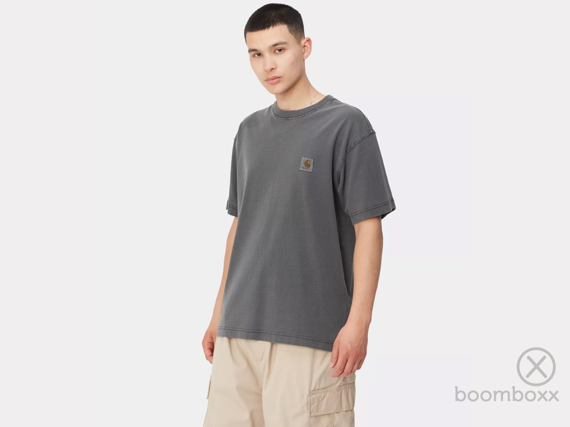 Carhartt Wip SS Nelson T-Shirt Black. Het S/S Nelson T-Shirt is gemaakt van lichte katoenjersey en heeft een loose fit. Het item is ook garment-dyed voor een zachtere feel en een complexe kleurstelling. Op de borst bevindt zich een geweven Square Label dat er door het verfproces wat vervaagd uitziet.