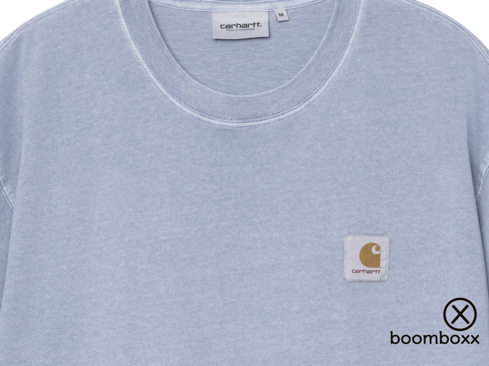 Carthartt Wip SS Nelson T-Shirt Gentle Blue. Het S/S Nelson T-Shirt is gemaakt van lichte katoenjersey en heeft een loose fit pasvorm in een prachtige zwart kleur met speciale dying threatment. Wil je alles zien van de Carhartt Wip dames collectie klik dan: HIER!
