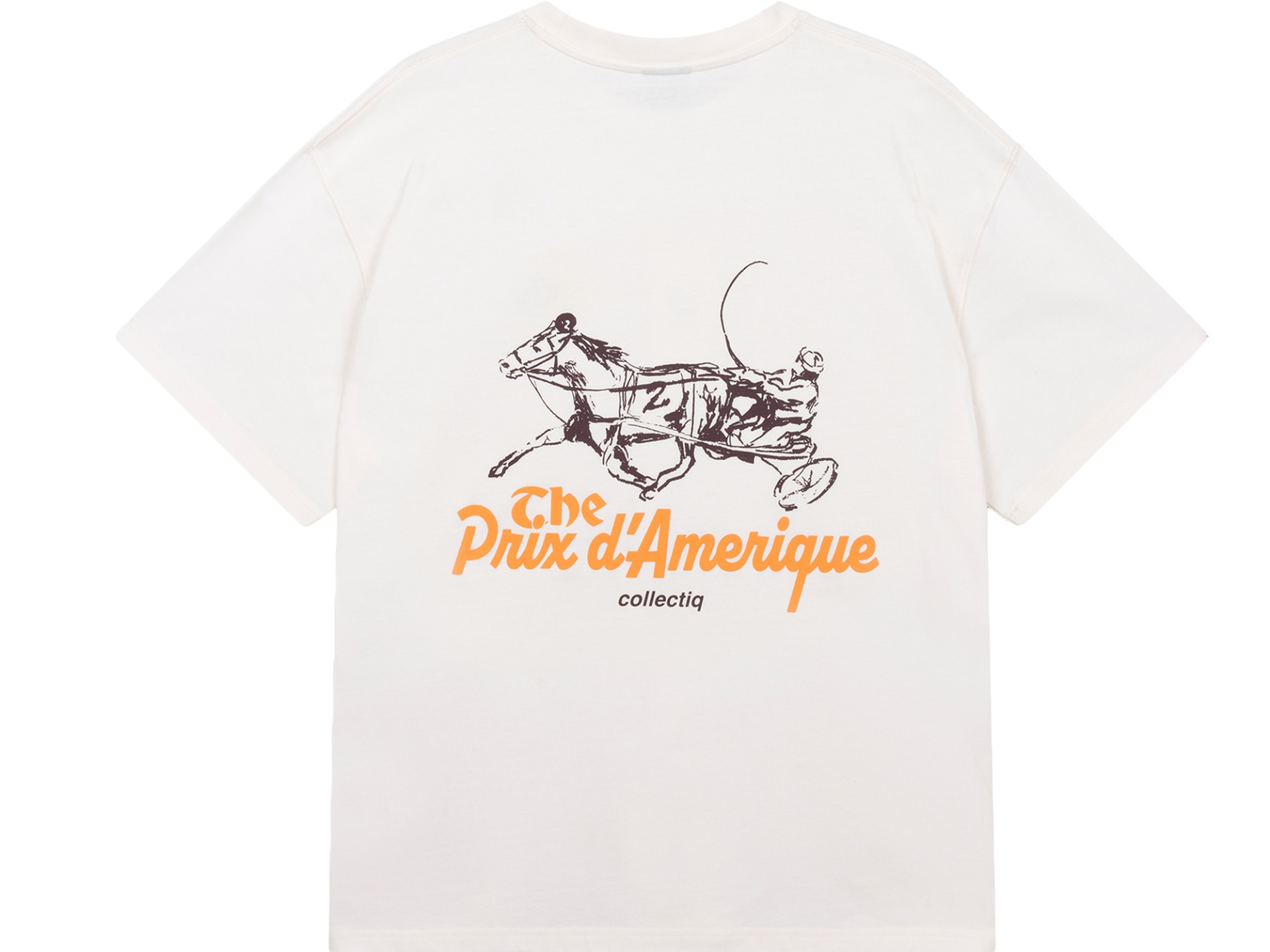 Collectiq Trotting Prix Tee Off White. Wij van Comfort Club Clothing veranderen alleen onze naam in Collectiq Clothing en nieuw onze visie. Wij van Collectiq blijven de streetwear brengen zoals je die van ons gewens was, oversized pasvormen, opvallende prints en verfijnde materialen. Shop de Collectiq Clothing collectie bij Boomboxx.