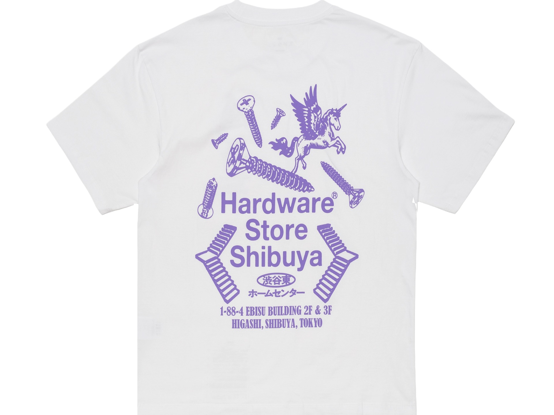 Edwin Hardware Store Shibuya White. Het Hardware Store Shibuya T-shirt heeft een oversized pasvorm met een geribbelde kraag en is gemaakt van zachte jersey. Het is voorzien van prints op de borst en de rug.