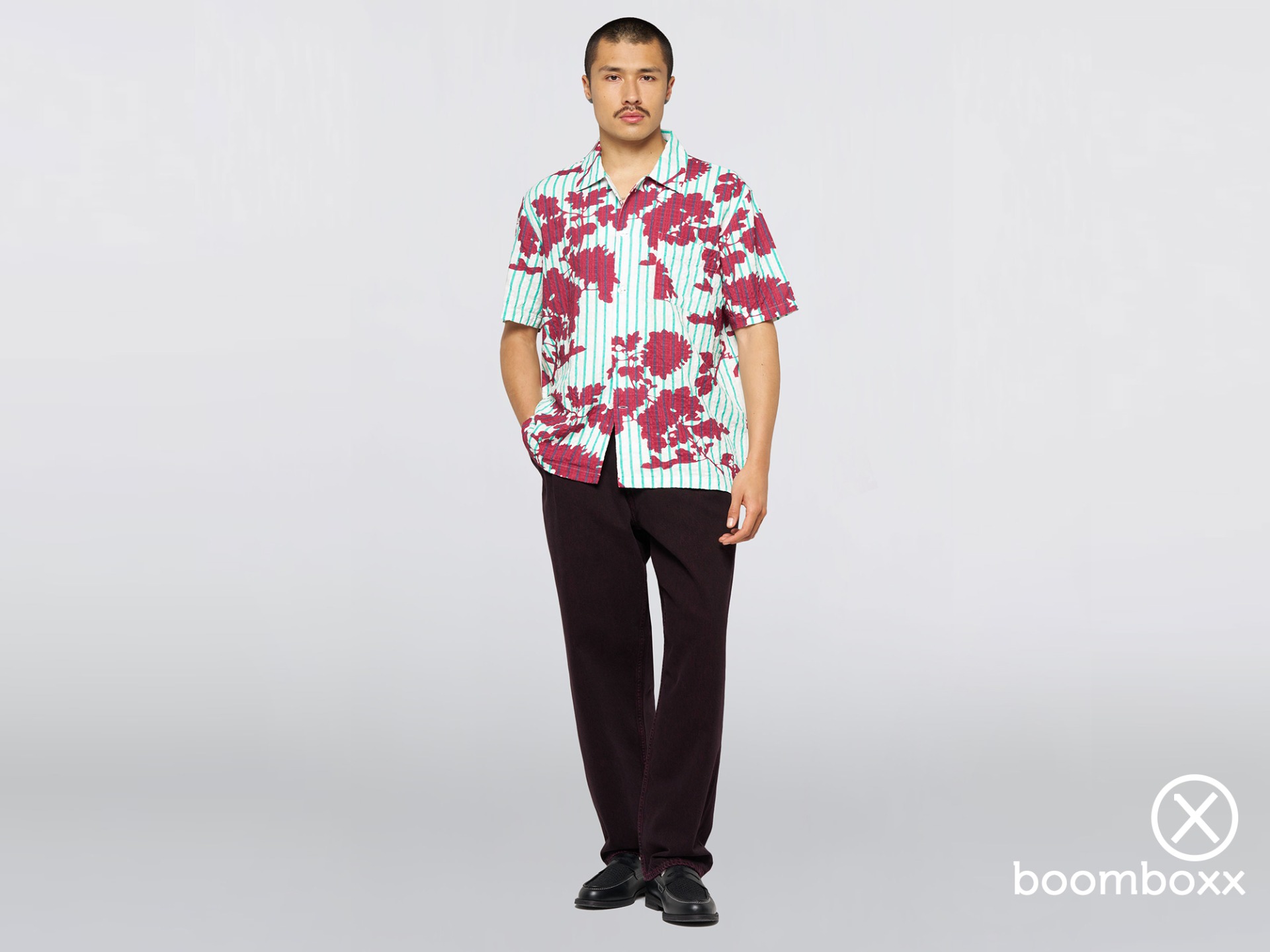 Het Hana To Sen Shirt SS is een opvallend en comfortabel zomershirt, gemaakt van een lichtgewicht AOP-structuurstof van 145 g/m², een mix van katoen en viscose voor een soepele, ademende valling. Het shirt heeft een levendige, veelkleurige all-over print (AOP) en een comfortabele, oversized pasvorm. Het is afgewerkt met een knoopsluiting, een borstzak en een geweven Edwin-label..