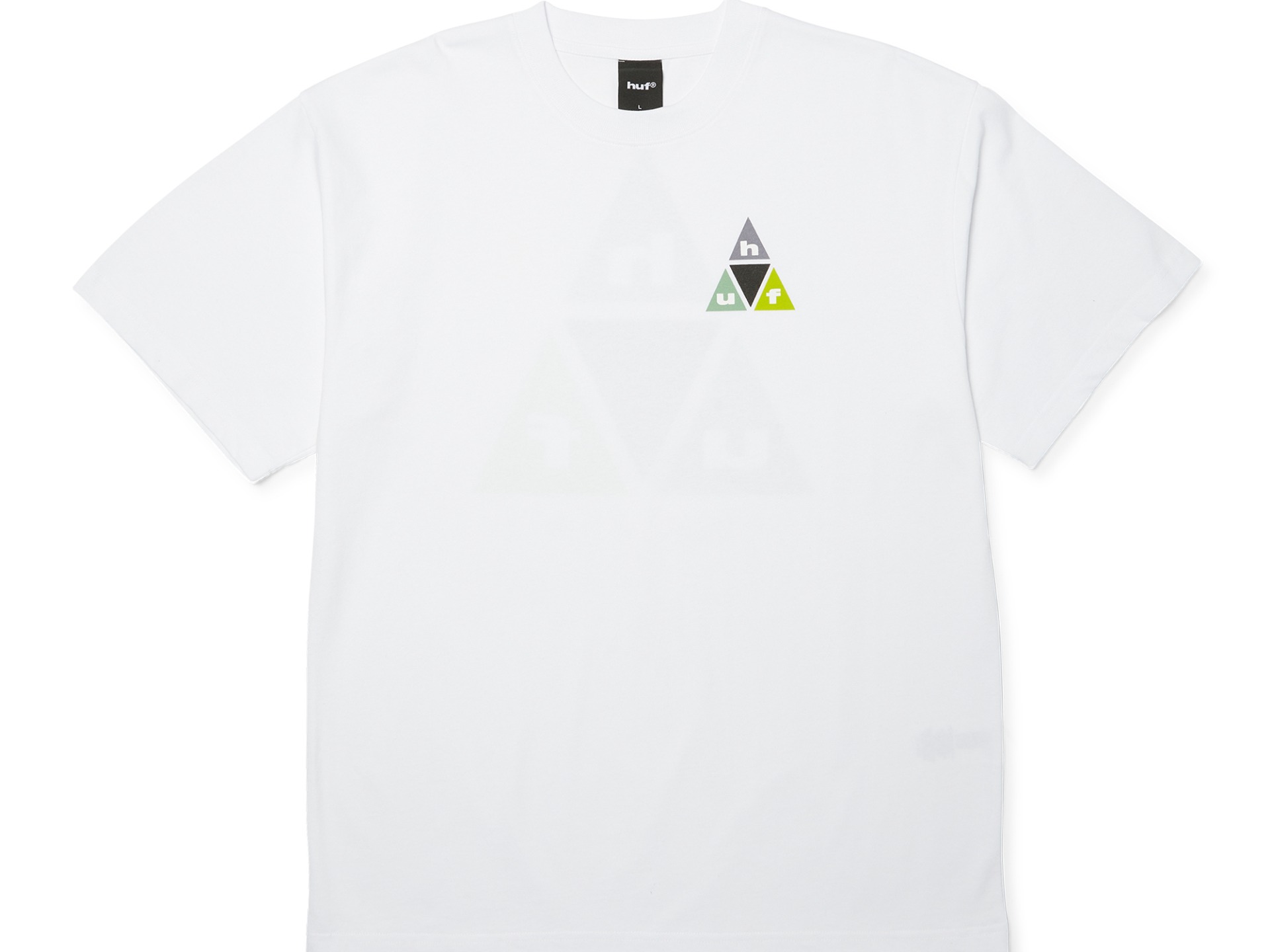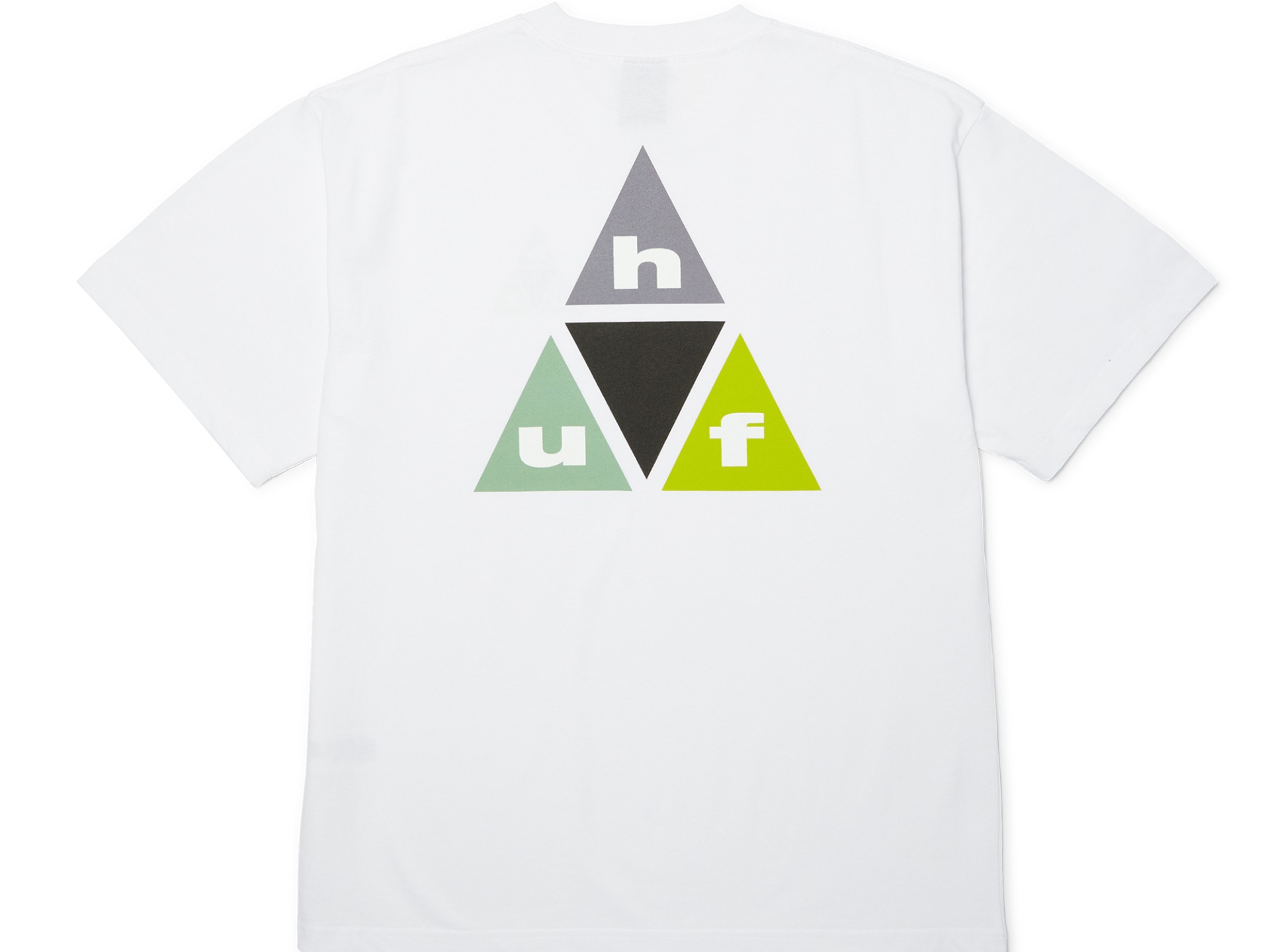 Huf Prism T-Shirt White. Een klassieker van Huf dit Prism triangle logo in frisse zomerse kleuren. Huf Wordlwide verkrijgbaar bij Boomboxx.
