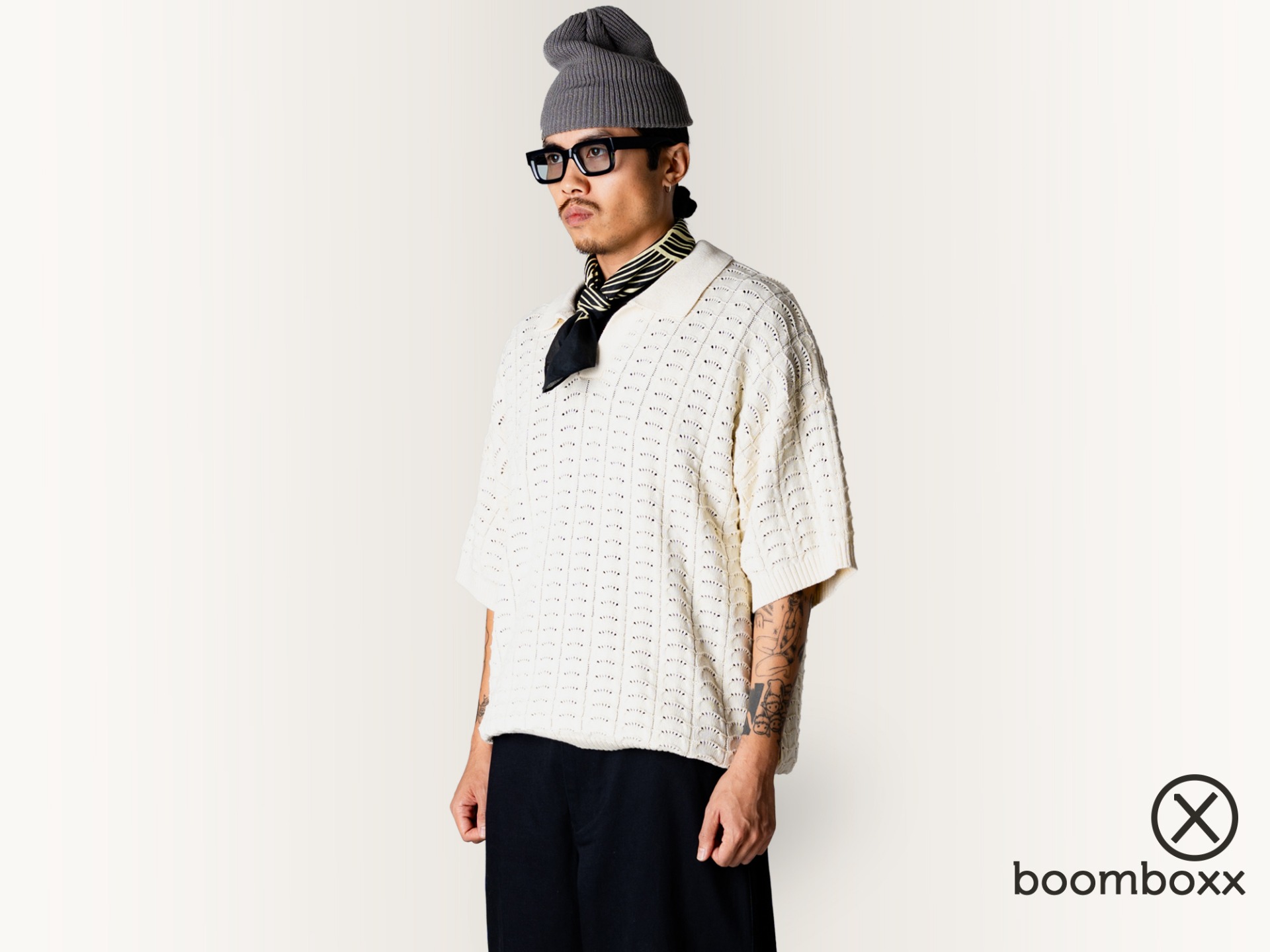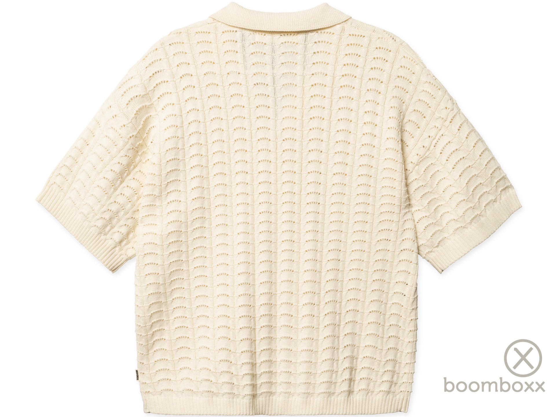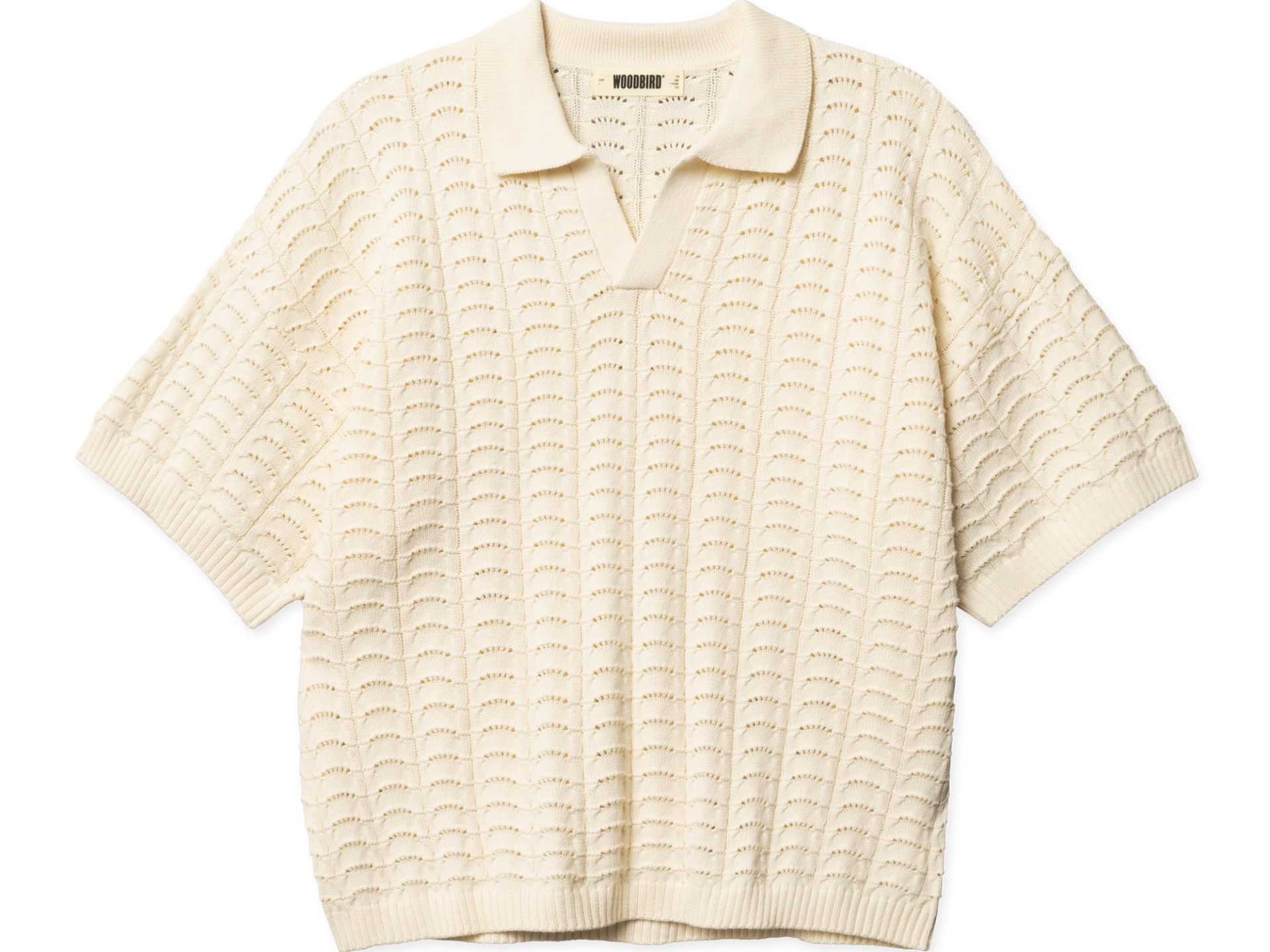 Woodbird WBshimo Wave Polo Off White. Strepen zoals het hoort. Deze polo met korte mouwen heeft een ademend, open patroon en een relaxte pasvorm – comfortabel om te dragen en onweerstaanbaar. Mooi gehaakt shirt met een polo kraag voor extra zomers luchtigheid voor dames en heren verkrijgbaar bij Boomboxx.