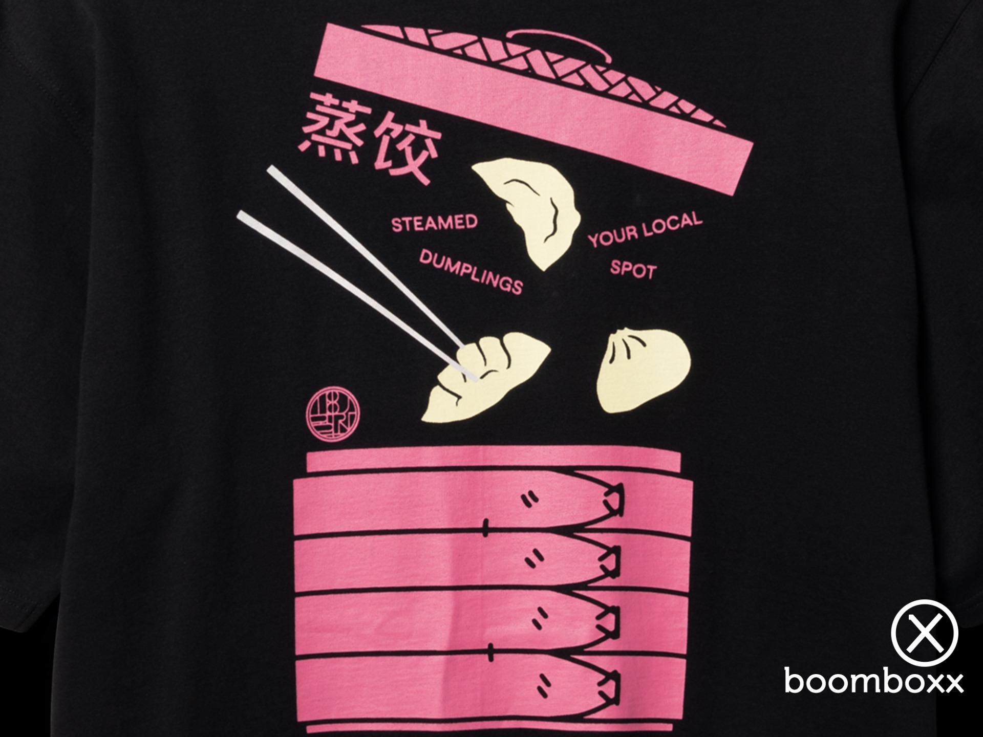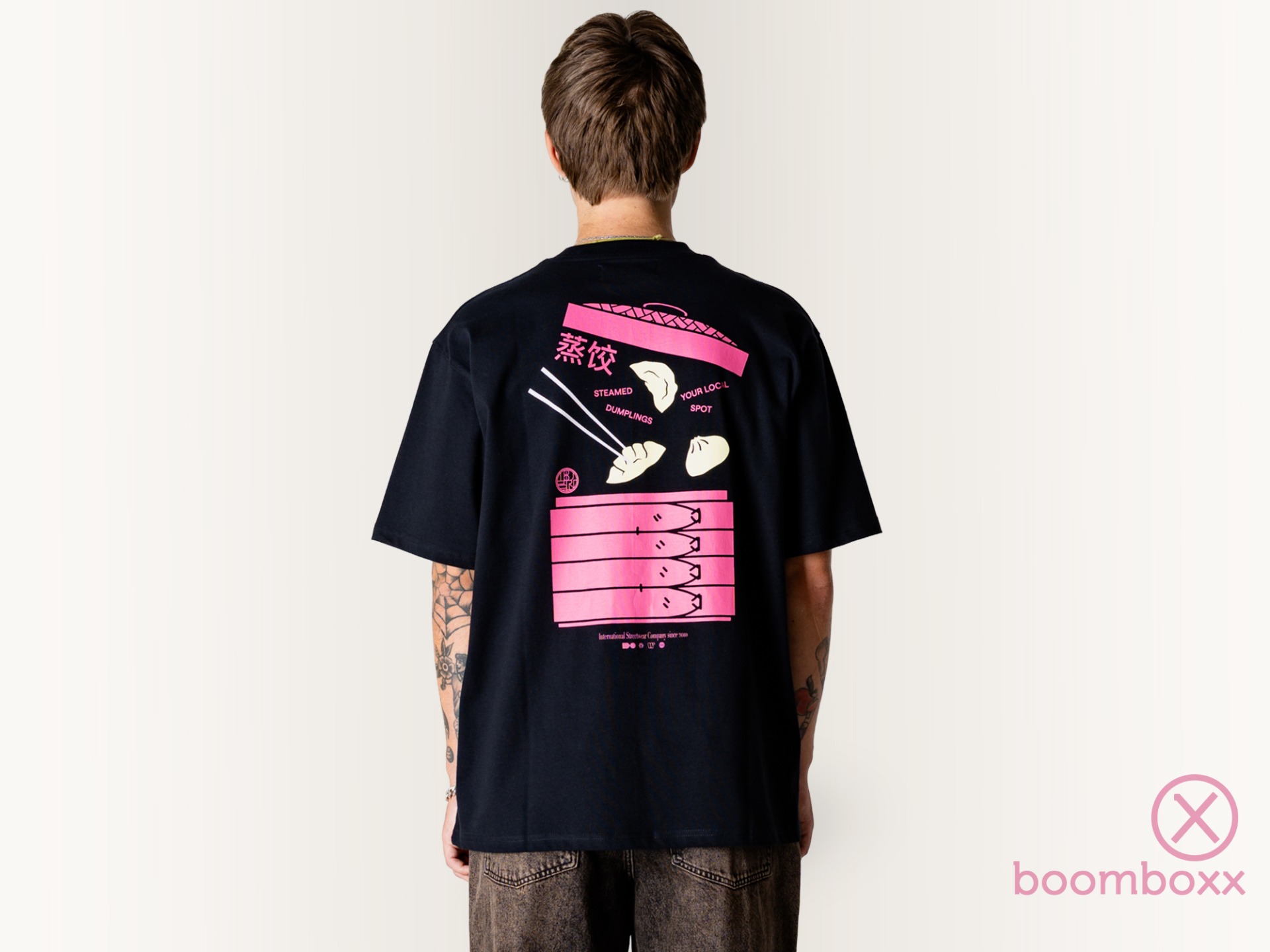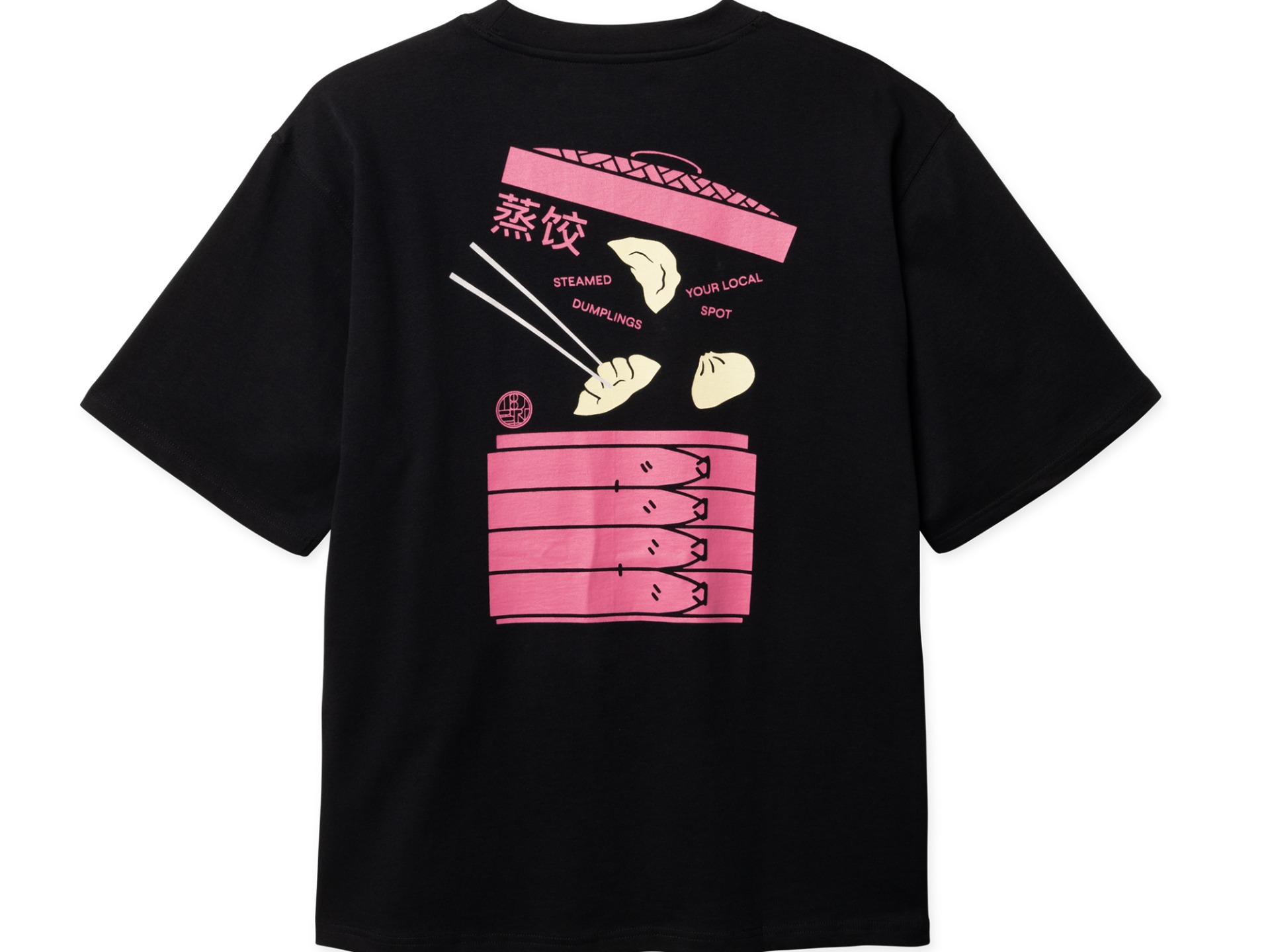 Woodbird WBbaine Dump T-Shirt Black. Een shirt dat smaak uitstraalt voordat het woorden bevat. Gestapelde gestoomde dumplings, eetstokjes klaar, een duidelijke hint naar eetlust. Het is niet zomaar een T-shirt – het is jouw favoriete katoenen shirt. Draag het alsof het de laatste hap is die je niet wilt delen.