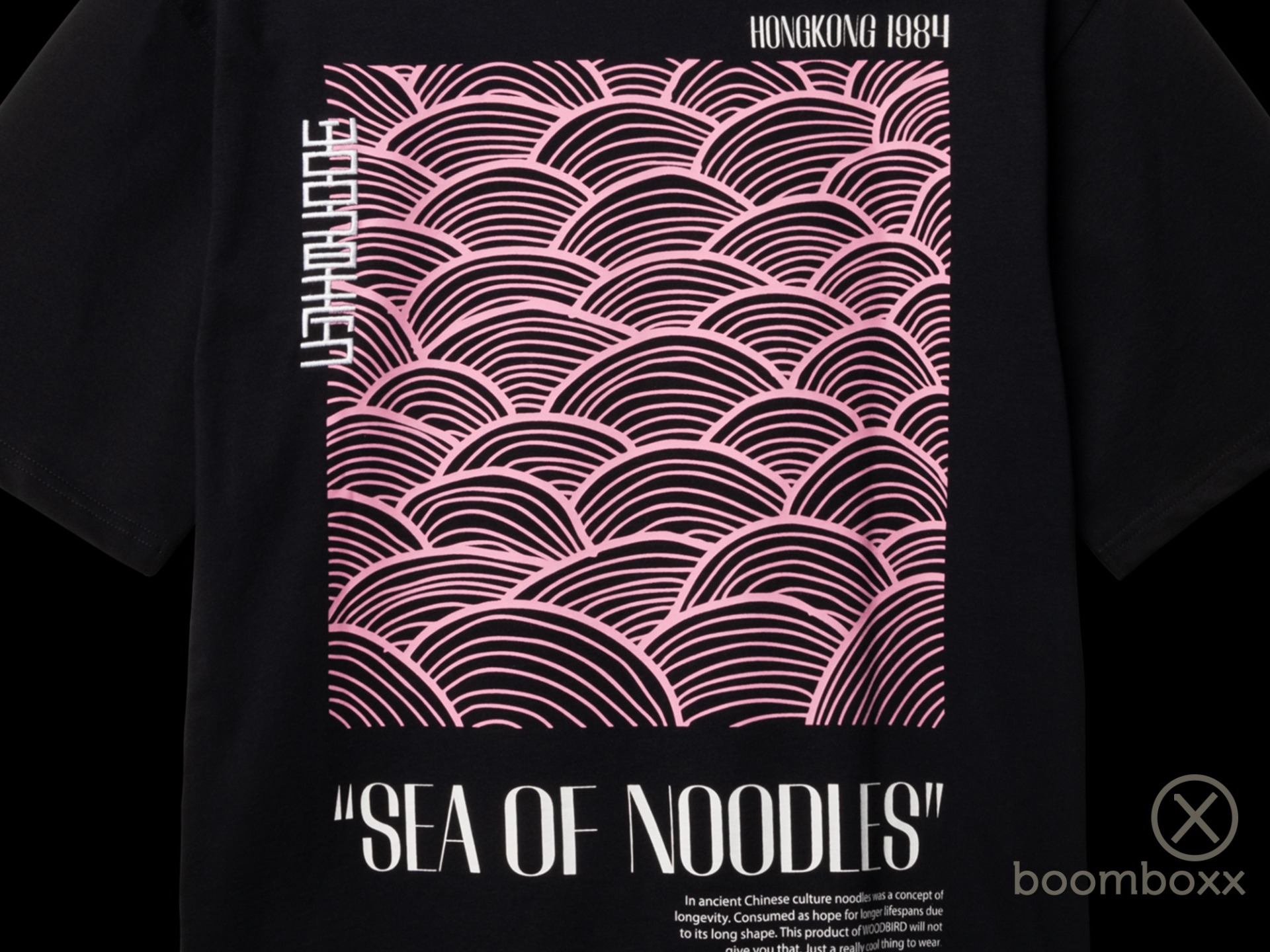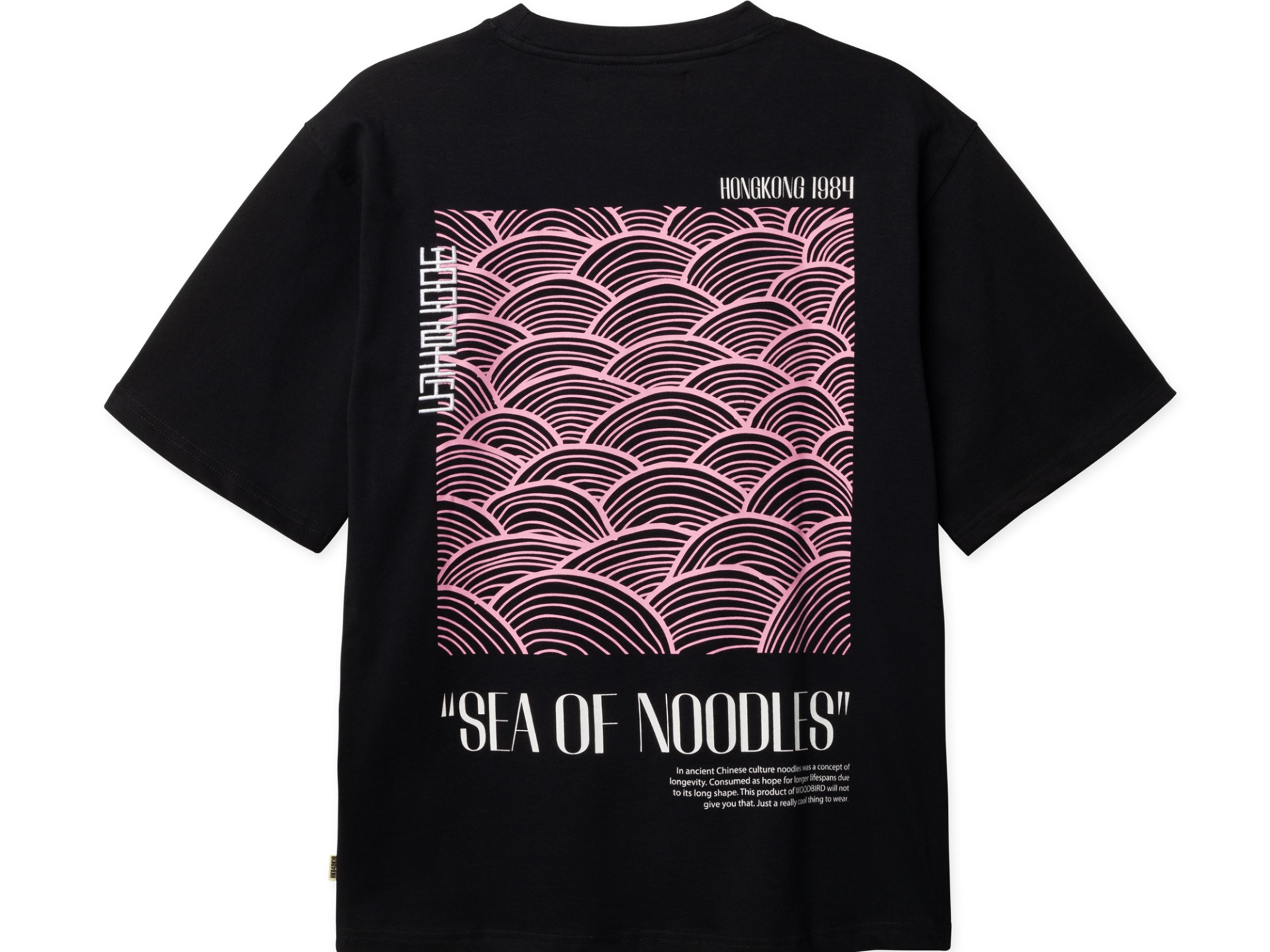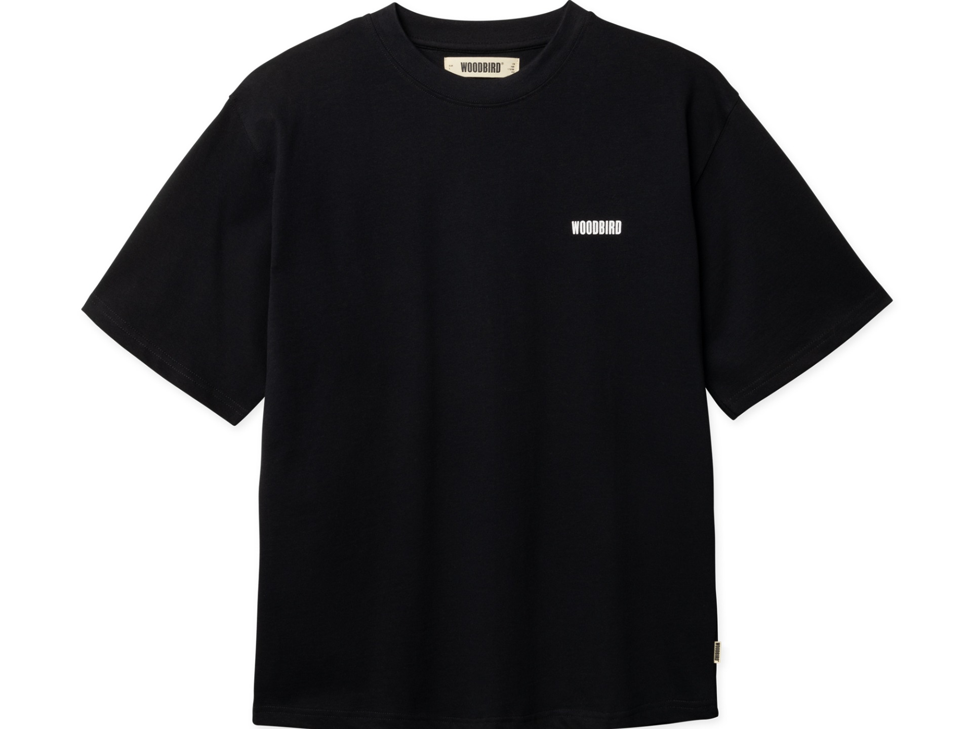 Woodbird WBbaine Sea t-shirt zwart. Duik in de grafische golven van dit T-shirt – een eindeloze zee van noedels. Het is net smaak, maar dan op stof. Draag de zee, omarm de vibe, verover de straten.