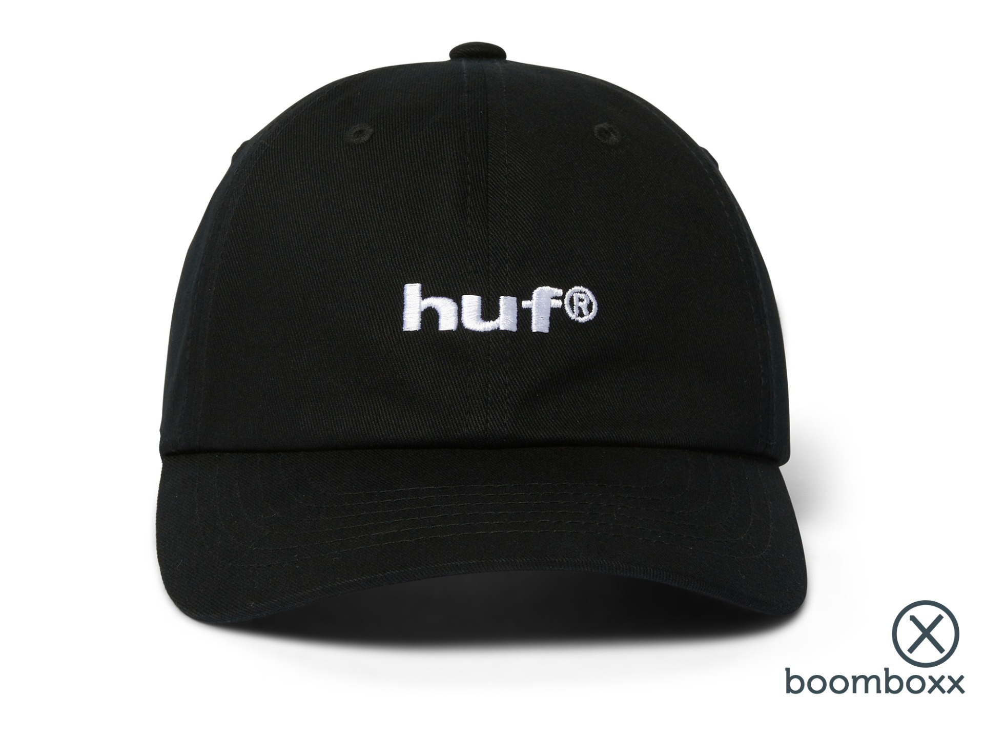 Huf 89 Embroidery 6 Panel Cap Black White. Deze basic Huf 89 logo cap verkrijgbaar bij de Boomboxx streetwear store in Gouda.