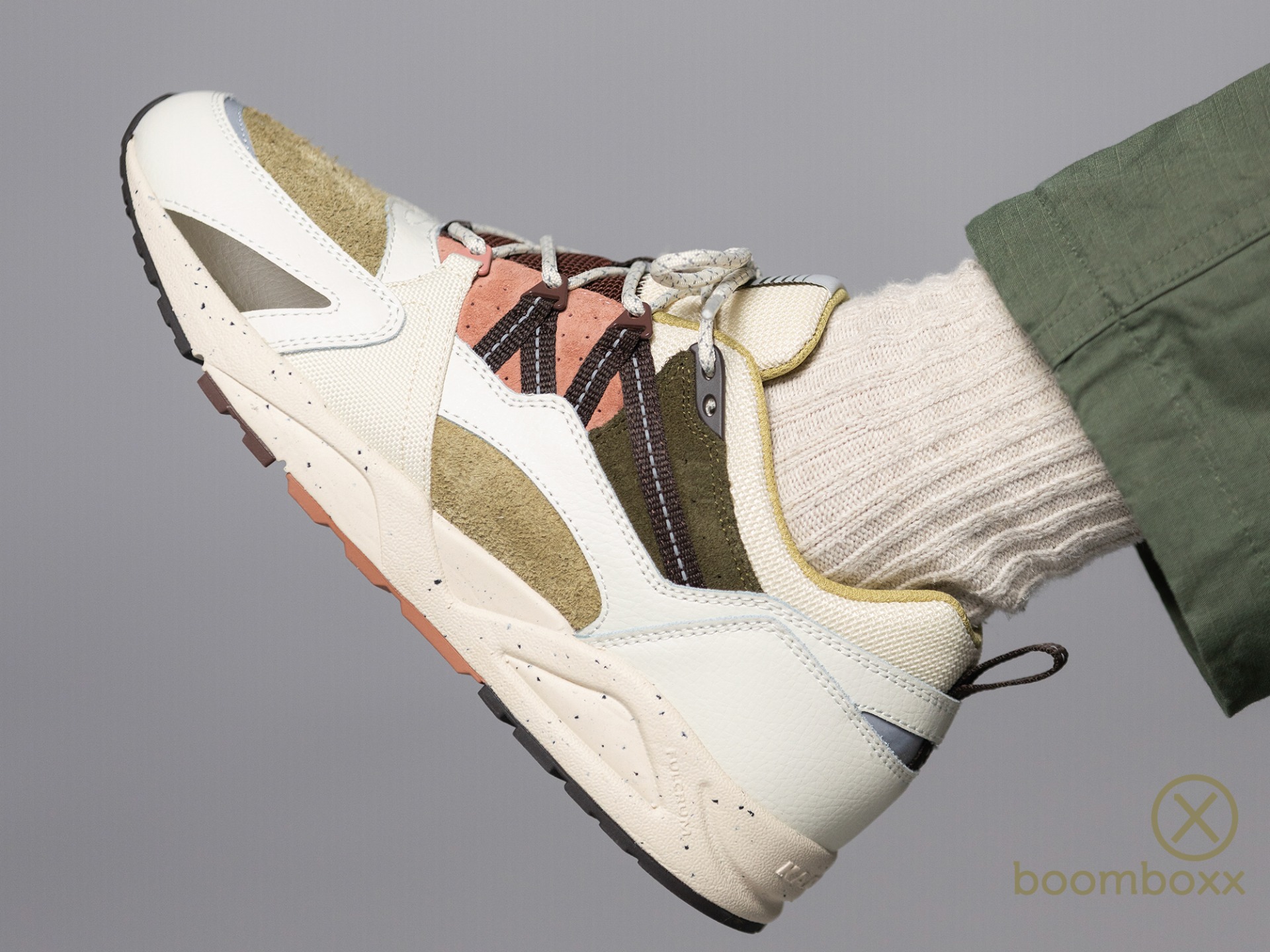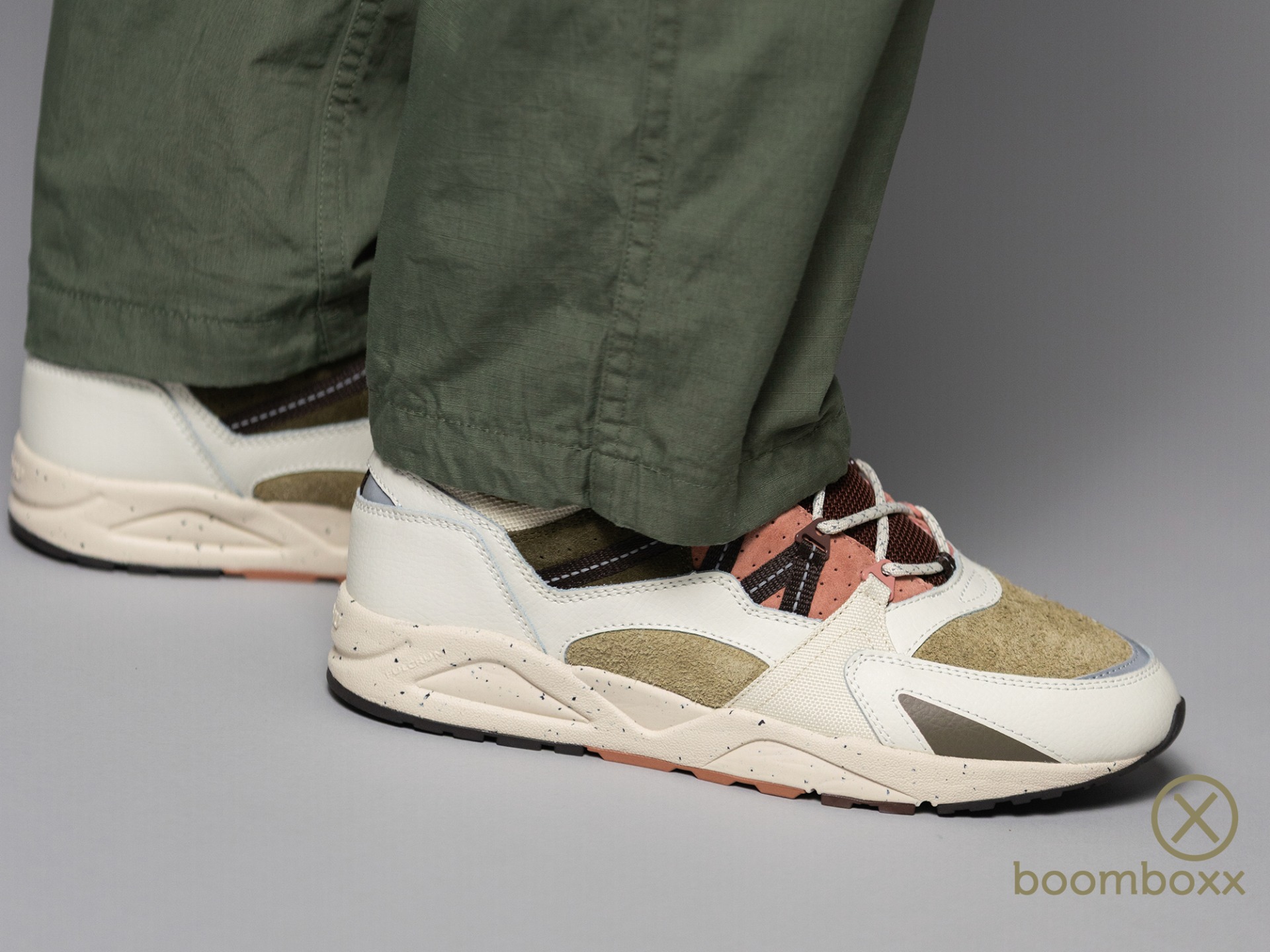 KARHU Fusion 2 Lily White Molé. De Karhu Fusion 2.0 sneaker is geïnspireerd op de Karhu Fusion uit 1996, een Karhu hardloopschoen destijds. De Fusion sneakers van Karhu maken gebruik van het Fulcrum dempings systeem. De Fulcrum-technologie van Karhu is ontwikkeld om hardlopers efficiënter en comfortabeler te laten lopen. Het concept achter de Fulcrum-zool is eenvoudig maar doeltreffend: een speciaal ontworpen inzetstuk in de zool behoudt de energie die normaal gesproken bij elke stap verloren gaat en zet deze om in voorwaartse beweging. Dit resulteert in een soepelere en meer responsieve loopervaring.