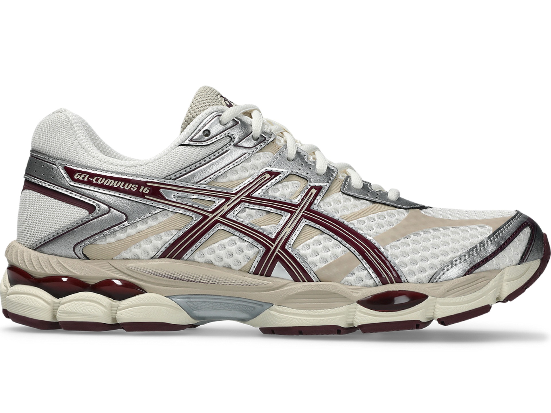 Asics Gel Cumulus 16 Cream Beniimo Purple. De ASICS GEL-CUMULUS 16 maakt een comeback, en hoe. Deze klassieker werd geboren voor de lange afstand, maar voelt zich vandaag net zo thuis op straat. Denk: old school performance vibes met een future-ready look. Het bovenwerk, een mix van glanzend synthetisch leer, seamless panels en ademend mesh. Retro tech ten top zoals je die kent van de Golden Era hardloopsilhouetten uit de 2010’s, technisch, stijlvol, en helemaal van nu.