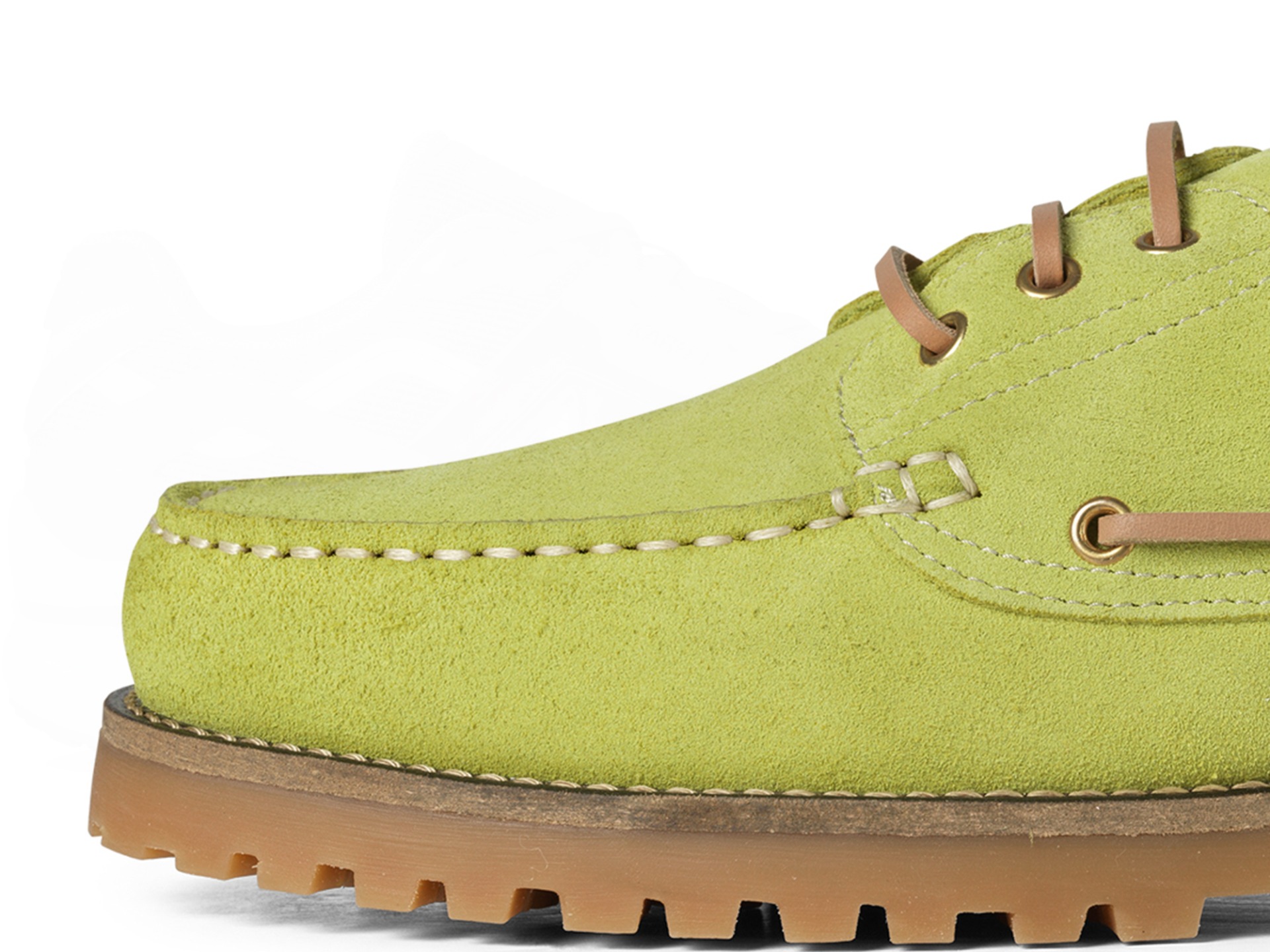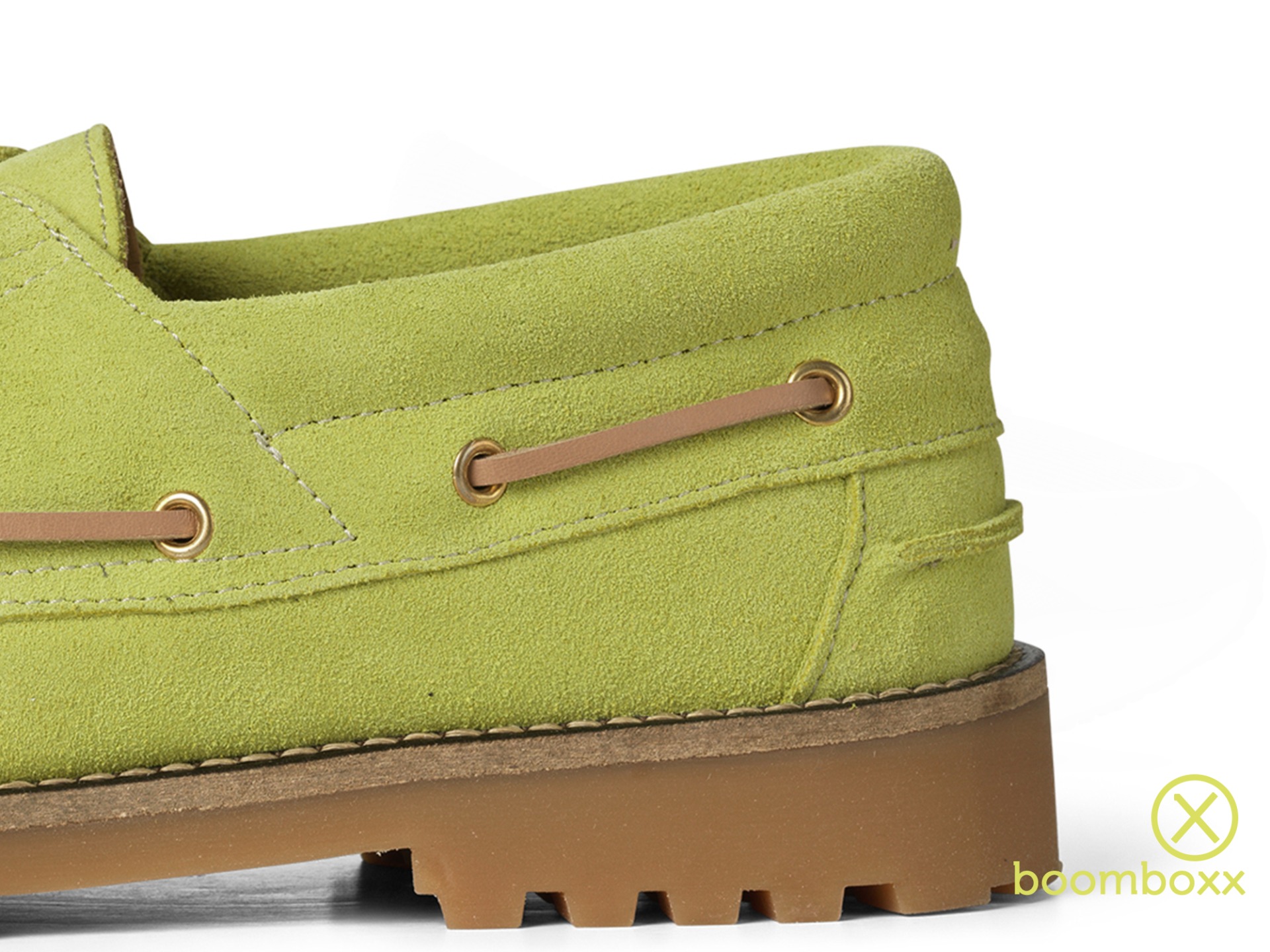 Garment Project Ollie Boat Schoen Acid Yellow. De Ollie Boat Shoe is geïnspireerd op de klassieke bootschoen en combineert nautisch erfgoed met een eigentijds design. Met handgestikte mocassins op de neus, vierkante bootveters en metalen veterogen vangt deze schoen de relaxte elegantie van een maritiem item en geeft hij elke outfit een verfijnde touch.